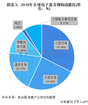 小型設(shè)備電子廢棄物占比最大,溫控設(shè)備增速較快,電子廢棄物回收利用率較低